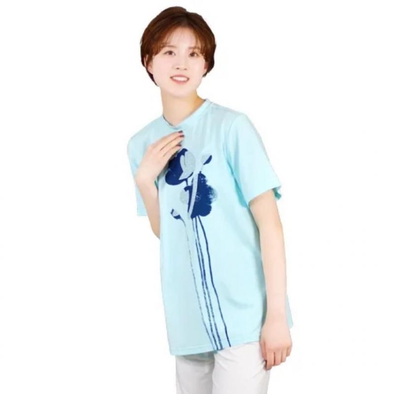 立ち姿が優雅な蓮をモチーフにしたモダンとアートのようなプリントTシャツです。