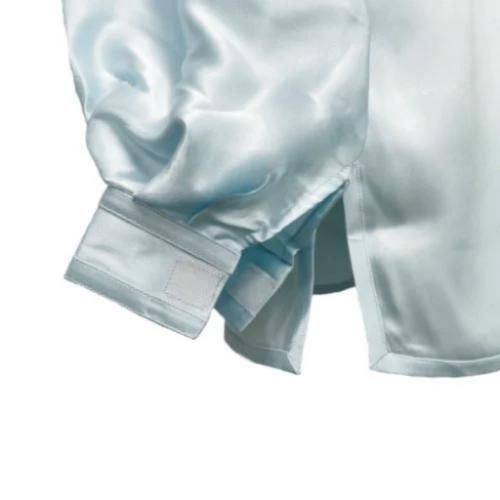 胸までファスナータイプで被りタイプです。袖口は、手軽なマジックテープ留めです。ポリエステル製の光沢の美しいサテン生地です。手軽に洗濯可能です。太極拳の表演服は通常1ヶ月半〜2ヶ月程かかりますが、こちらは在庫商品ですのでご注文後、数日で発送が可能です。
