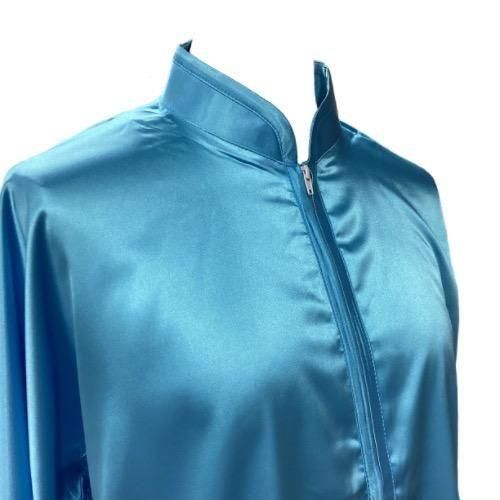 胸までファスナータイプで被りタイプです。袖口は、手軽なマジックテープ留めです。ポリエステル製の光沢の美しいサテン生地です。手軽に洗濯可能です。太極拳の表演服は通常1ヶ月半〜2ヶ月程かかりますが、こちらは在庫商品ですのでご注文後、数日で発送が可能です。